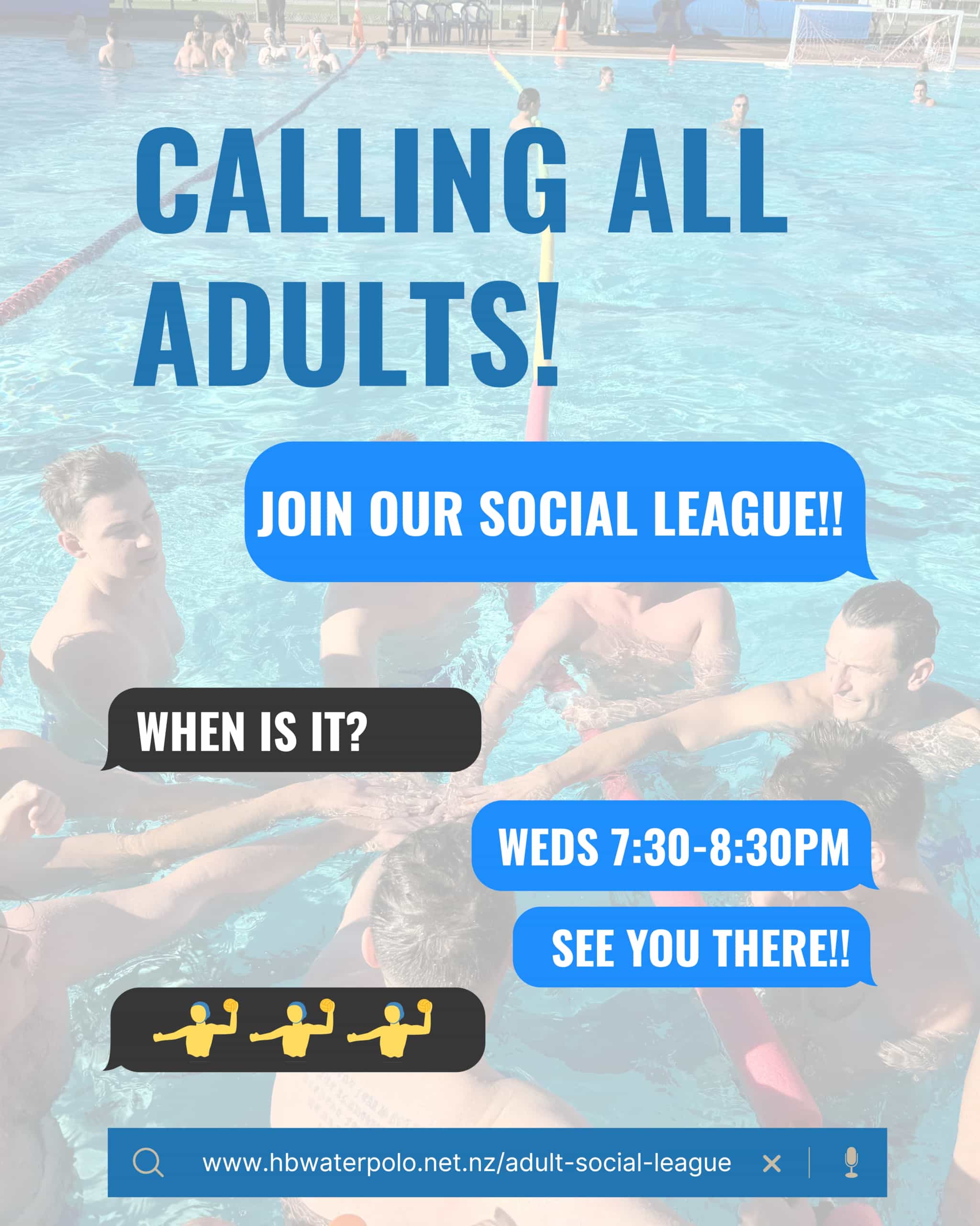 Join us at the Hawkes Bay Regional Aquatic Centre for a season of thrilling games, camaraderie, and aquatic fitness. Our league is open to adults aged 18 and above, and no prior water polo experience is required. Whether you're a seasoned player or just looking for some aquatic fun, this league is the perfect choice.