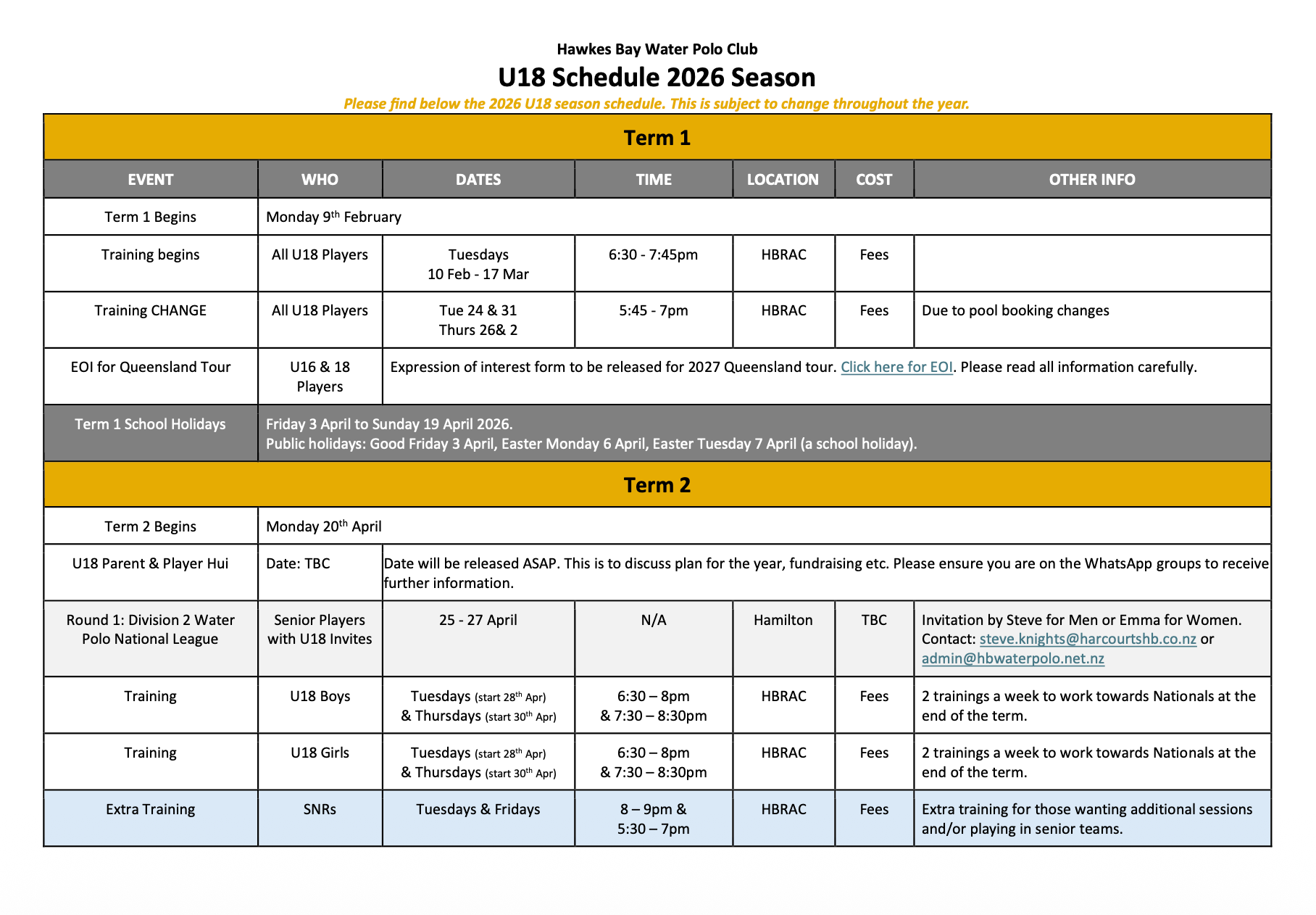 NZWP Fee: Players must also register through New Zealand Water Polo (NZWP), with an additional fee payable before competing. $35.